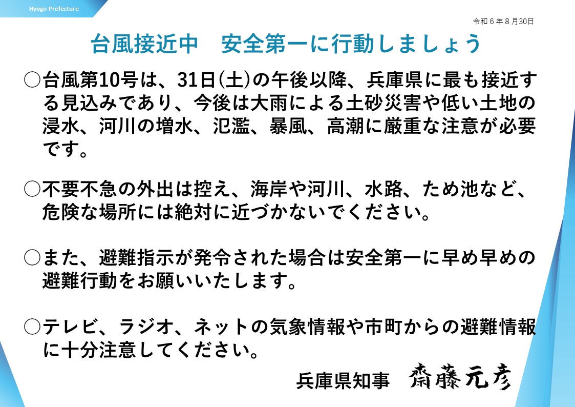 台風第10号の影響に伴う兵庫県災害警戒本部の設置について(PDF:58KB)