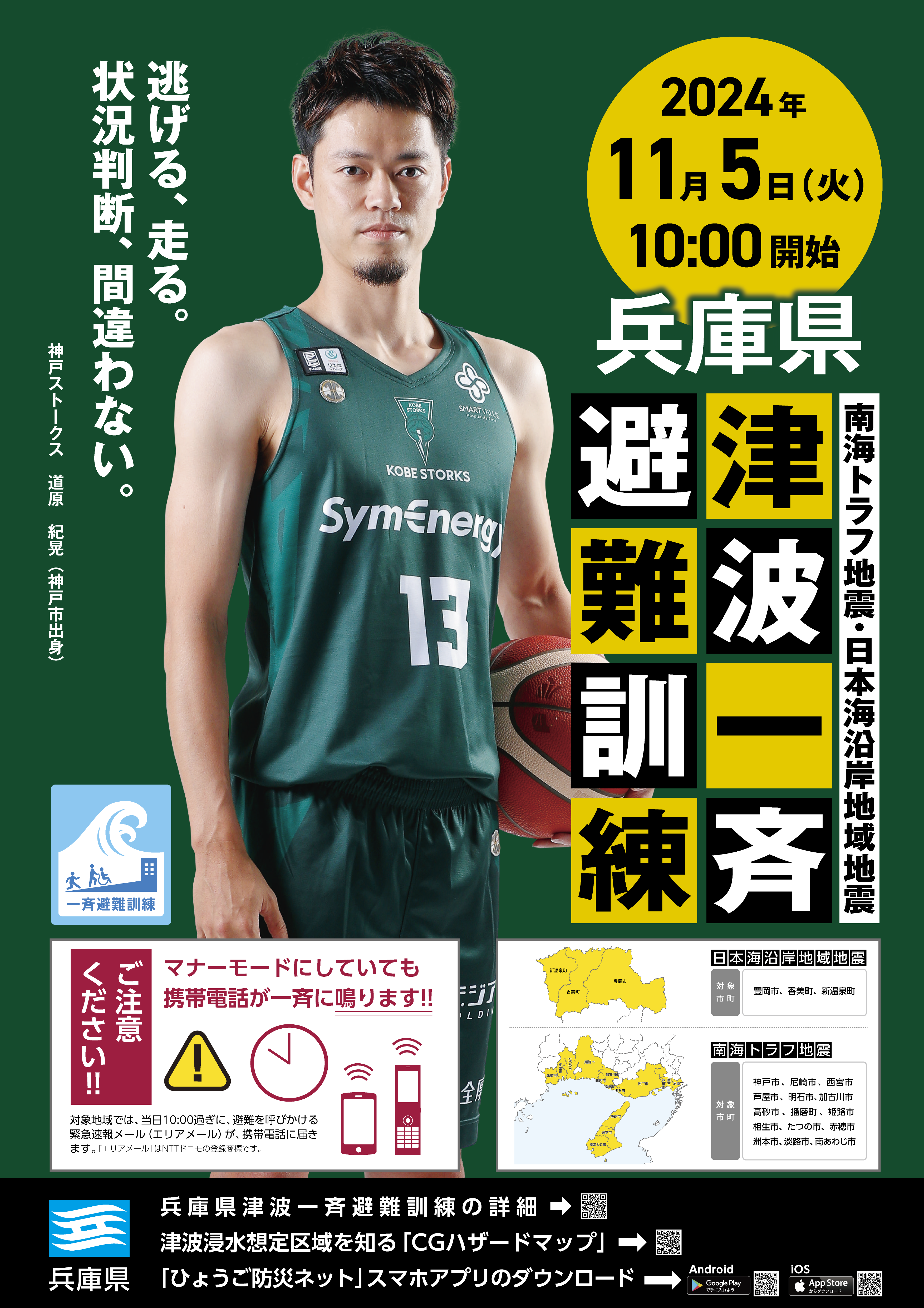 兵庫県では、毎年、津波一斉避難訓練を行っています。実際に避難行動をすることだけでなく、「自宅や職場からの避難経路を知ること」や「自宅や職場の安全性について確認すること」も、災害から命を守るために必要だと考えています。