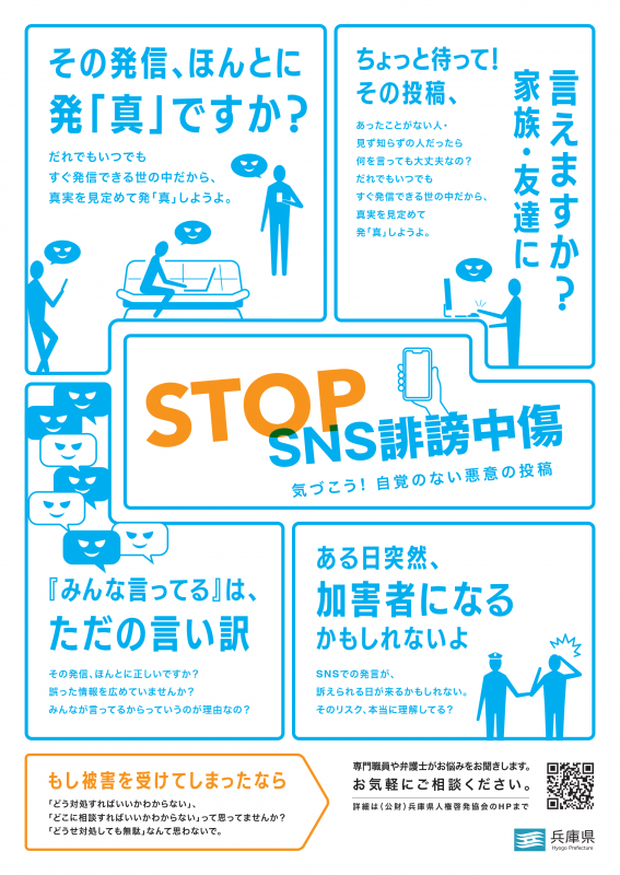 SNSによる誹謗中傷等が深刻な社会問題となっていることを踏まえ、SNS広告やデジタルサイネージ等を活用した啓発動画の発信や、ポスターの配布・掲示による誹謗中傷等防止啓発キャンペーンを実施します。