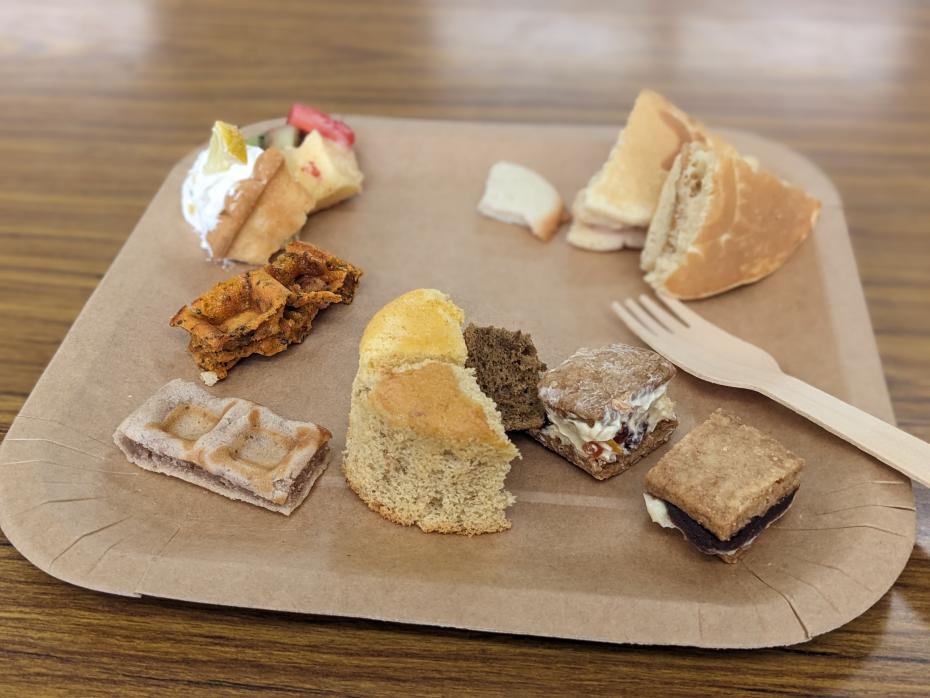 東播磨産の大麦粉を使った焼き菓子など合計6種類の試作品が並びました。