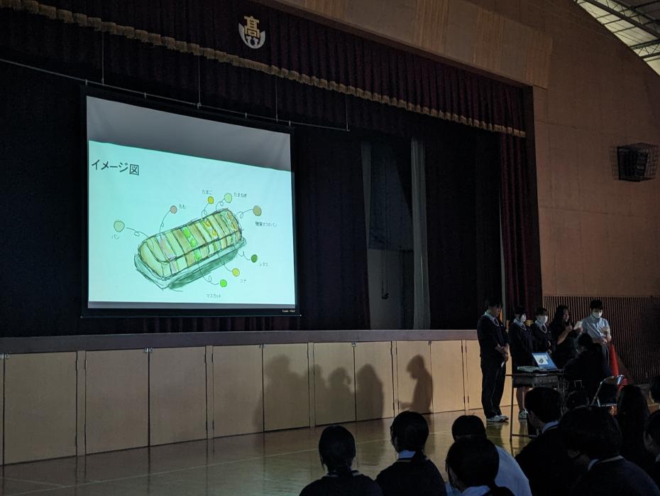 サンドウィッチやおにぎり、ヨーグルト、カレーパンなど、様々な商品が提案されました。値段設定や広報媒体、他の商品との差別化など学生たちの柔軟な発想がつまったプレゼンとなりました。