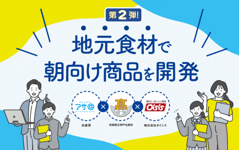 兵庫県立神戸北高校の生徒が株式会社オイシス指導のもと、兵庫県産食材を活用した朝食向けの商品を開発。昨年9月よりスタートした取り組みが、約半年間の試行錯誤の上、製品化されました。