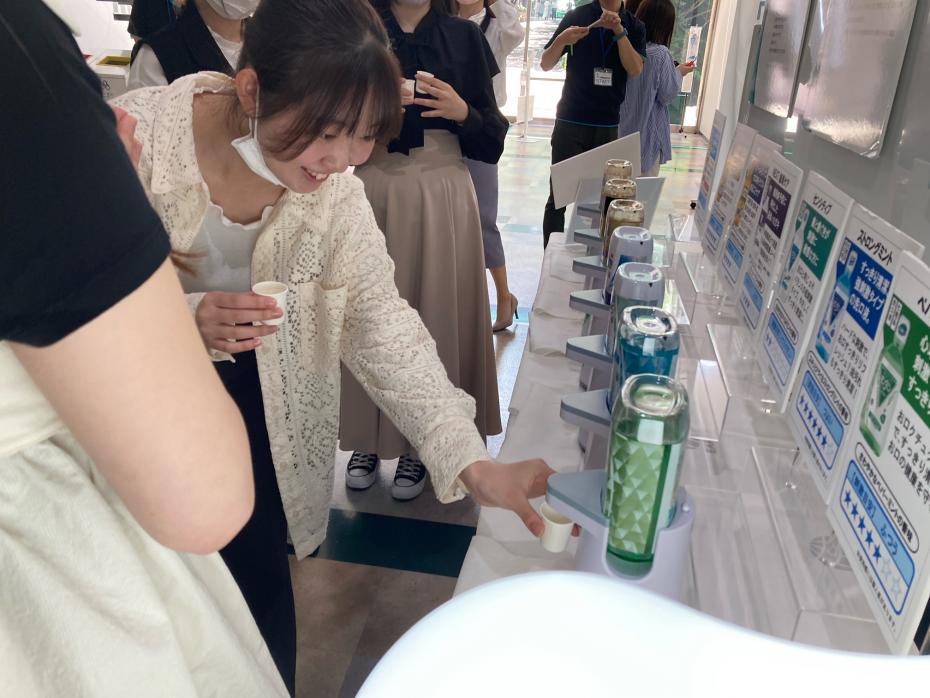 学生たちは気になる洗口液を紙コップに入れ洗口。使用後の口の状態について、感想を話し合う場面もありました。
