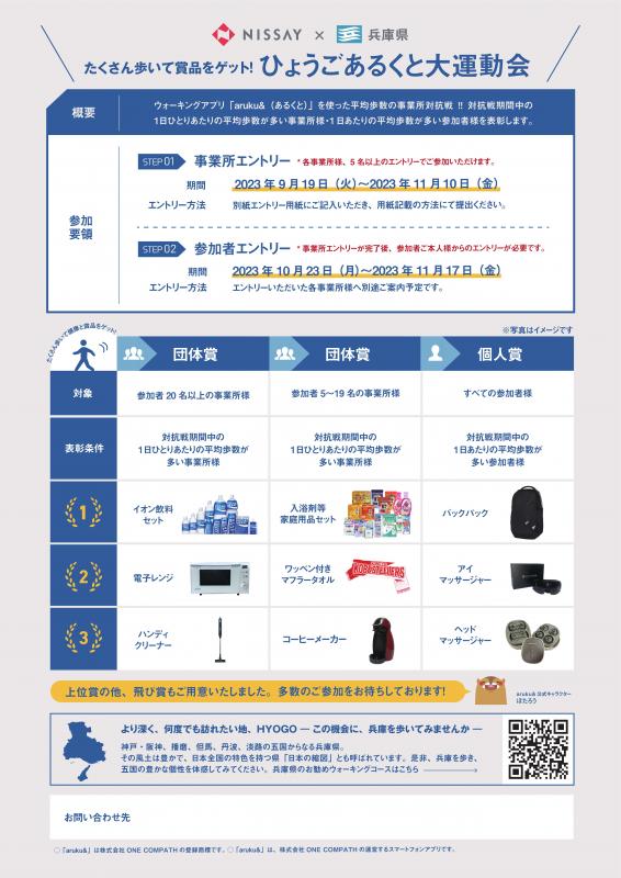 兵庫県と日本生命保険相互会社が連携し、事業所対抗ウォーキングイベント「ひょうごあるくと大運動会2023」を開催します。