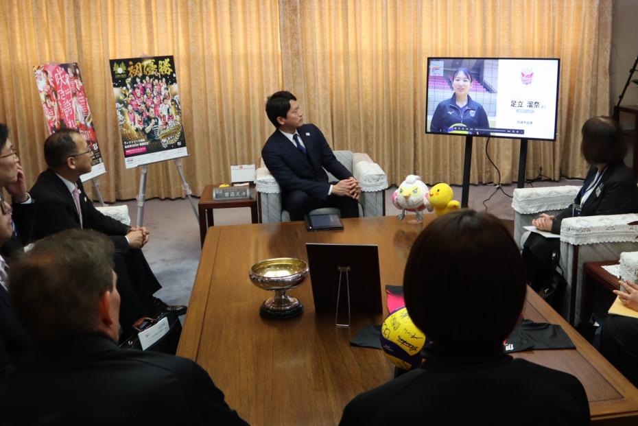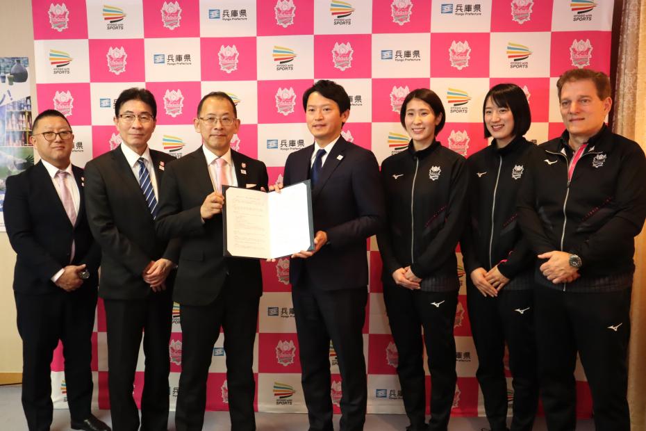 齋藤知事からは「連携協定を結び、プロスポーツチームと地域の活性化にむけて一歩スタートできたことを意義深く思っている。バレーボールの魅力を兵庫の子ども達に伝えてほしい」と期待の言葉を述べました。