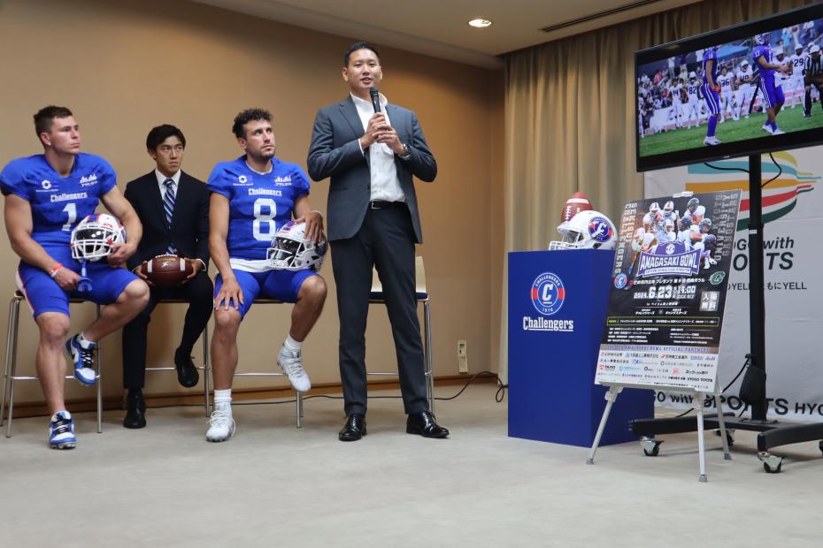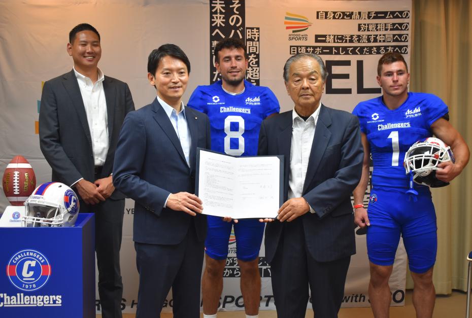 県庁で開かれた締結式では、齋藤知事が、「甲子園ボウルなど、兵庫県のアメフトに対するポテンシャルは高い。チャレンジャーズの力を借りて、競技力向上に取り組んでいきたい。」と抱負を語りました。