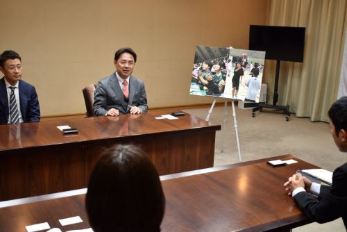 川上社長は、プロジェクトについて、「地域とのつながりを大切にするわが社の建物関連事業に通じるものがある」と語り、齋藤知事は、「子ども達のスポーツ体験を創出する大切なプロジェクトに活用させていただく」と寄附への感謝を述べた。