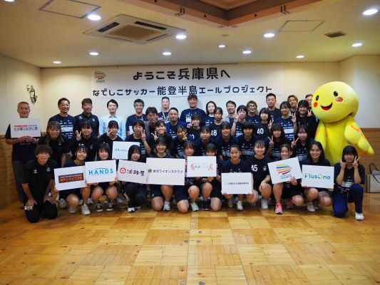 令和6年能登半島地震で被災した石川県立七尾高校の女子サッカー部(能登半島唯一)を兵庫に招待するプロジェクトを8月5日から7日までの2泊3日で実施。INAC神戸トップ選手によるサッカー教室や兵庫県立北須磨高校との試合等を通じて交流を深めました。