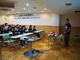 全ての行程が終わり、最後の解散式。INAC神戸の安本氏が駆けつけ、高校生にエールを送りました。七尾高校 横山悠乃さんと北須磨高校 鈴木菜衣さんがプロジェクトを振り返って感想を発表。七尾高校・北須磨高校がハイタッチをして別れを惜しみつつも、七尾高校は兵庫県庁を出発しました。