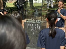東遊園地に2000年1月17日に建立された「1.17希望の灯り」の前でお話を聞きました。点灯してから今まで燈され続けた「1.17希望の灯り」や、阪神・淡路大震災の犠牲者の名前が刻まれた銘板に思いを馳せながら、震災を忘れないことの大切さを学びました。