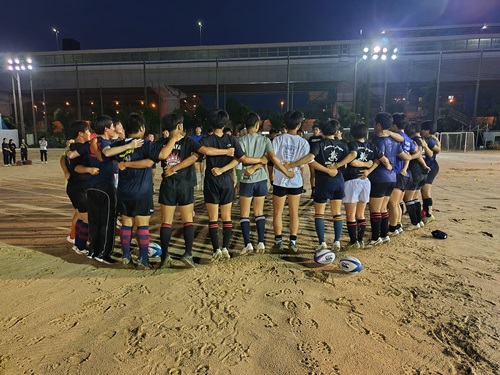 日本ラグビーフットボール協会との連携のもと、学校にラグビー部がない、平日も練習したい高校生を受け入れるラグビー教室を開催。練習グラウンドの提供には、県立芦屋高等学校に協力いただきました。