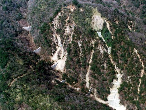 激しく浸食が続いている六甲山には、階段式に数多く治山ダムをつくる必要があります。