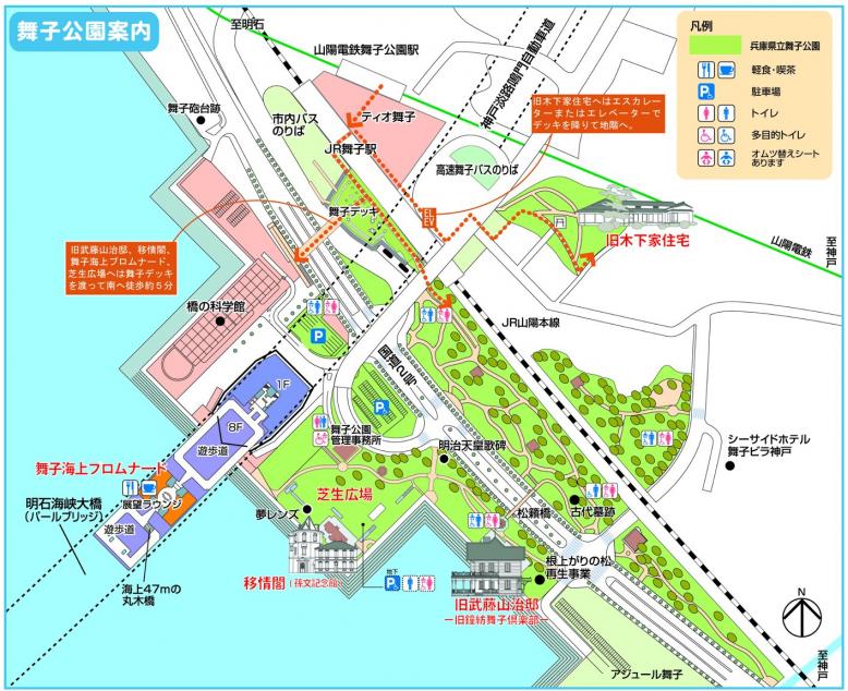 また、公園内には明治・大正・昭和の3つの時代と、和・洋・中の3つの文化の趣を持つ歴史的建築物が修復または復元され当時と変わらぬ姿で公開されています。このように舞子公園には、様々な魅力が満載でご家族や友人と楽しめる公園ですので是非お越し下さい。
