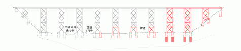 旧余部鉄橋の現地保存箇所(赤着色:現地保存箇所) |