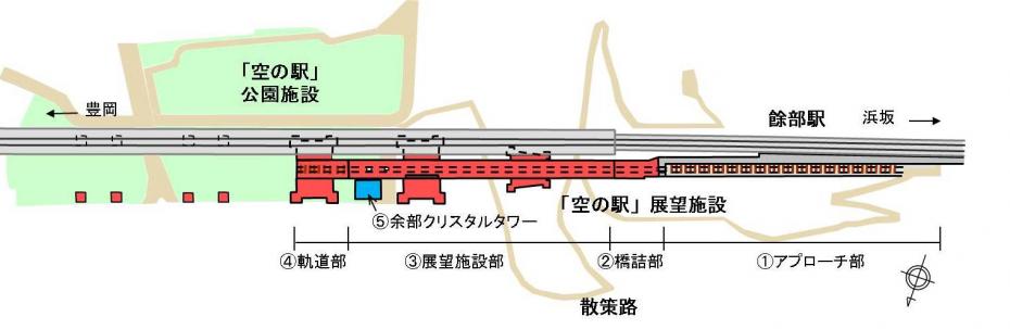 約100年間山陰本線の運行を支えてきた旧余部鉄橋の歴史を後世に継承するとともに、人々の交流を促す観光拠点とするため、鉄橋の一部(餘部駅側の3橋脚3スパン)を展望施設として残し、旧鉄橋直下に自由広場等からなる公園施設とあわせ、平成25年5月に展望施設「空の駅」が完成しました。
