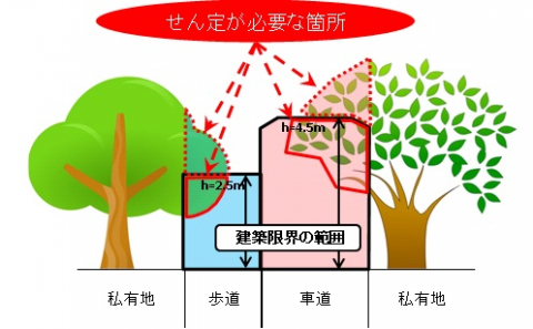 これらが原因で自動車や歩行者等に事故が発生すると、樹木の所有者の責任を問われることがありますので、沿道竹木等の適正な管理をお願いします。