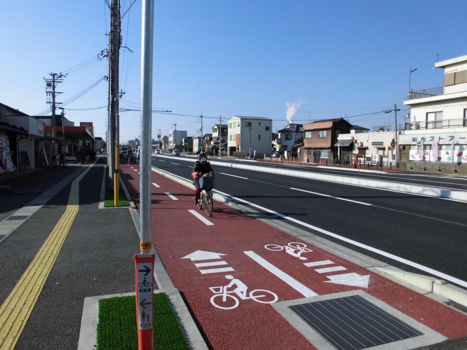 県では、平成24年度~平成30年度の7箇年で「歩行者・自転車分離大作戦」に取り組み、計画の400kmを上回る404kmの歩行者、自転車の安全対策を実施しました。今後は、「自転車ネットワーク路線」及び「中高生の自転車通学経路」のうち安全対策が必要な箇所の整備を計画的に推進し、安全で快適な自転車通行空間を創出します。