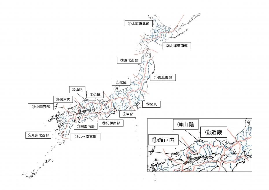 淀川水系-1、淀川水系-2、加古川水系(下流圏域)、加古川水系(中流圏域)、加古川水系(丹波圏域-1)、加古川水系(丹波圏域-2)、揖保川水系、由良川水系、円山川水系(下流圏域、出石川圏域)、円山川水系(上流圏域)