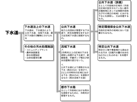 複数の流域関連公共下水道からの下水を受け入れるための幹線及び中継ポンプ場とこれを処理するための終末処理場からなり、原則として都道府県が事業を行う。