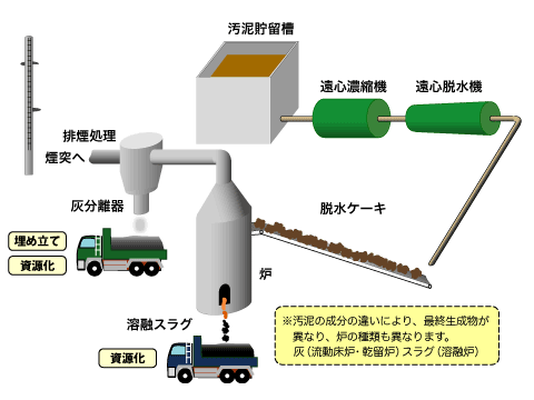![]() 一般的な汚泥の処理方法(焼却・溶融) |