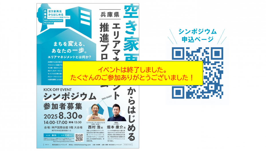 「空き家再生からはじめるエリアマネジメント推進プログラム」第1弾のキックオフイベントとして、「空き家再生からはじめるエリアマネジメント」シンポジウムを開催します。エリアマネジメントに興味をお持ちのまちづくり、空き家活用、建築、不動産等関係の皆様のご参加を心よりお待ちしております。