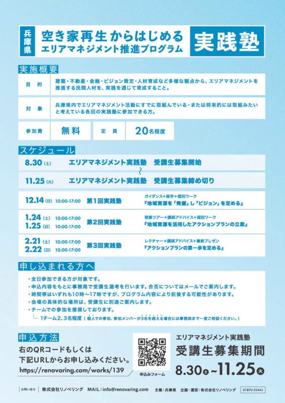 専門的な知識や経験をもとに、効果的なプログラムを実施する「空き家等を活用したエリアマネジメントの担い手育成塾等企画・運営業務」を委託するための公募型プロポーザルを実施しています!