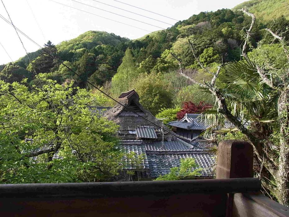 | 川西市黒川のはせや旅館から見る茅葺き民家 |