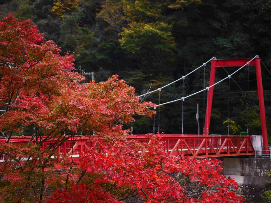 廃線ハイキングでも、電車でも行ける紅葉スポット。無料の足湯も楽しみのひとつです。 撮影:佐尾和美 |