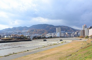 市内を縦断する武庫川から臨む六甲山系の山並みは宝塚を代表する景観です。 撮影:宝塚市都市計画課 |