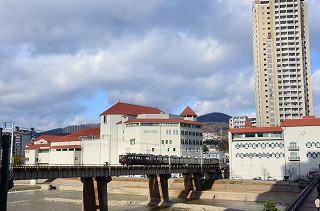 | 宝塚大橋から見る宝塚大劇場と阪急電車 |
