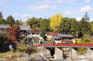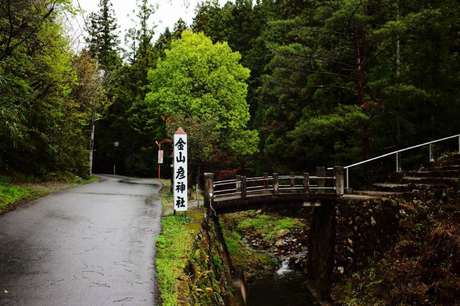 | 猪名川町金山彦神社入り口から見る金山彦神社の参道に架かる橋 |
