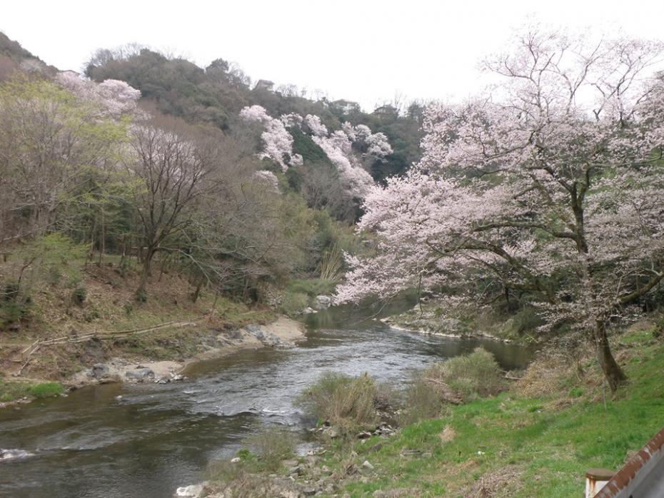 | 川西篠山線(多田院付近)から見るエドヒガン群生地と猪名川 |
