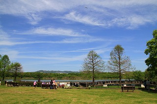 周辺が自然公園として整備され、桜や福島大池、そして野鳥の観察など見どころも多い。池を隔てて正面に有馬富士が望まれ、湖面に映った逆さ富士がさざ波に揺れる景色は、まさに逸品と言える。 撮影:三田市都市計画課 |