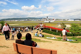 伊丹空港(大阪国際空港)の滑走路に隣接する公園で、飛行機の離発着が間近に見られる。子ども用遊具が充実した冒険の丘や夜間に幻想的な風景が広がる星空の丘等がある。 撮影:伊丹市都市計画課 |