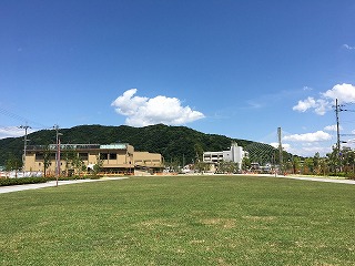 | 川西市 キセラ川西せせらぎ公園から見る五月山とビックハープ |