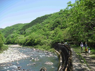 古き良き時代の雰囲気と武庫川の渓谷美とが融合した景観を楽しみながら、自然と触れ合うことができます。 撮影:宝塚市都市計画課 |