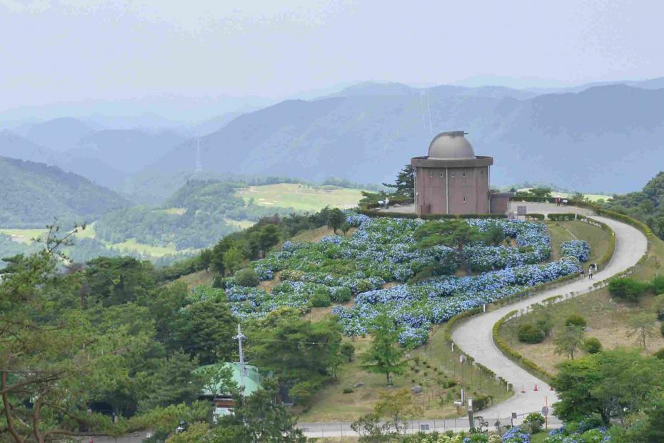 | 猪名川町大野アルプスランドから見る猪名川天文台を囲む紫陽花 |