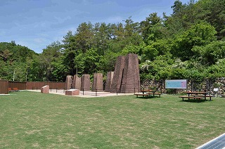 | 猪名川町 悠久広場から見る製錬所跡のレンガ構造物 |