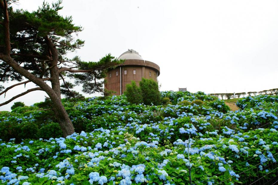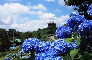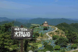 | 阪神地域最高峰の大野山(おおやさん)。その山頂から望む猪名川天文台と周辺に咲き誇るあじさいの風景は圧巻。 |