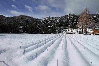 古くから茶の産地として知られる母子地区では、春には茶畑一面の緑が、冬には雪化粧するなど、季節に応じた風景を楽しむことができる。 撮影:三田市都市計画課 |