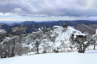 | 阪神地域最高峰、753mの大野山山頂付近からは多くの山々がそびえ立つ姿を見ることができ、雪化粧した大野山は絶景です。 |