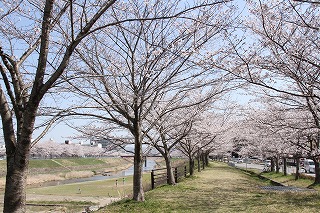| 三田市県道黒石三田線(貴志)から見る武庫川の桜づつみ回廊 |