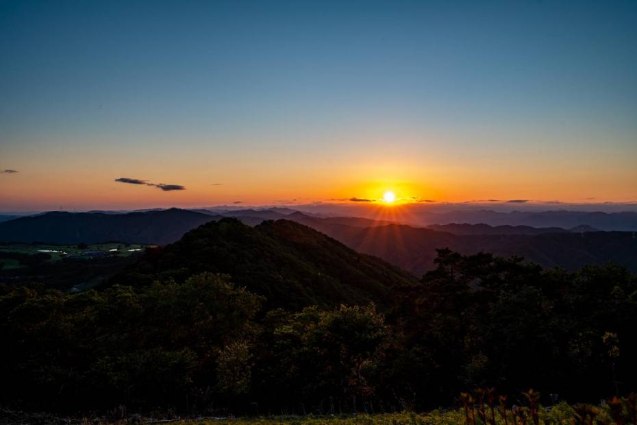 | 猪名川町大野アルプスランド大野山頂上付近から見る夕日 |