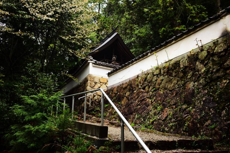| 猪名川町金山彦神社の塀から見る金山彦神社を囲う塀から垣間見える本殿の屋根 |