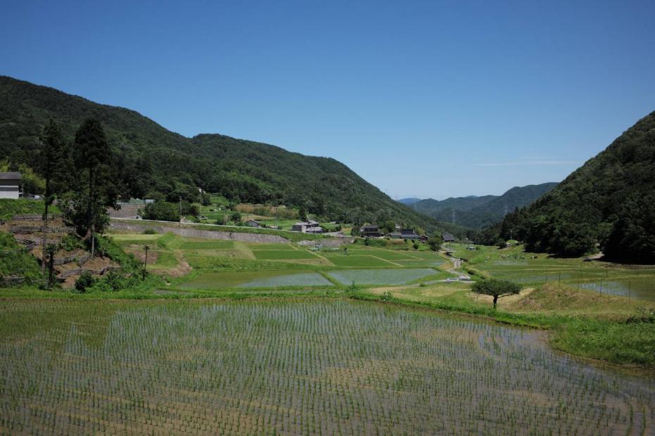 | 阪神地区のなかにありながら、自然豊かな猪名川町ならではの田園風景。美味しい空気・水・大地の中で美味しい米や野菜が育てられる。 |