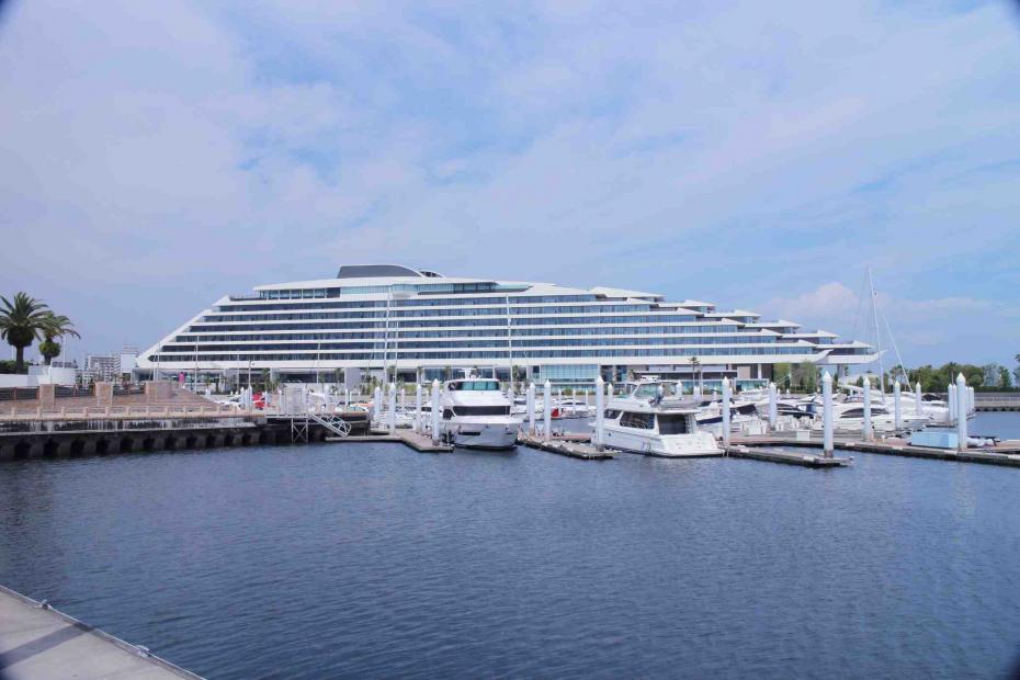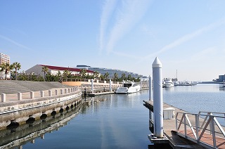 | 芦屋マリーナから見る芦屋マリーナとその向こうに見えるホテル |
