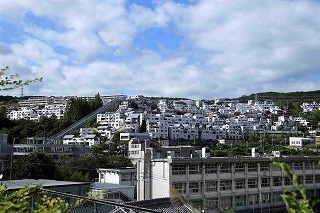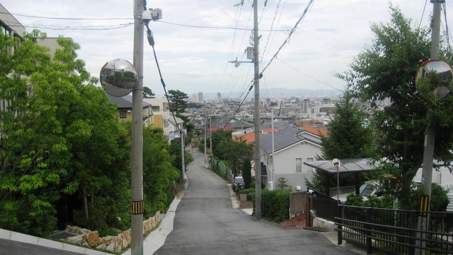 | 三条町の坂の上から見る芦屋の住宅地と坂 |