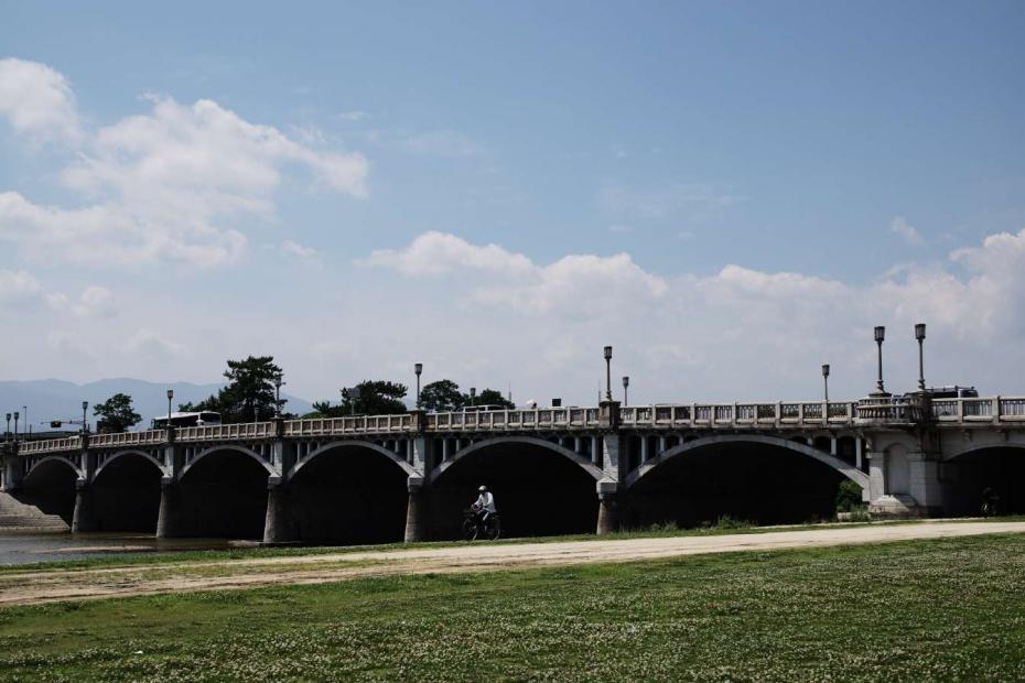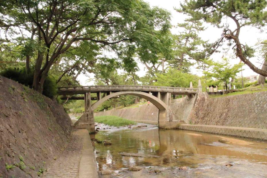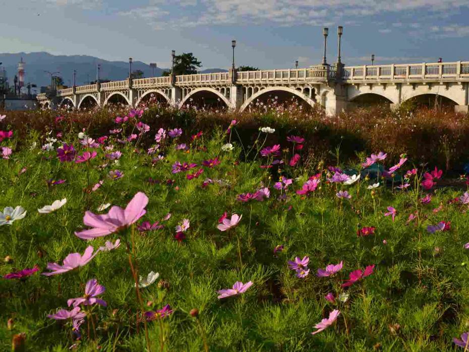 | 夙川にかかるアーチ状が印象的な橋は西宮らしい景観のひとつ。 |