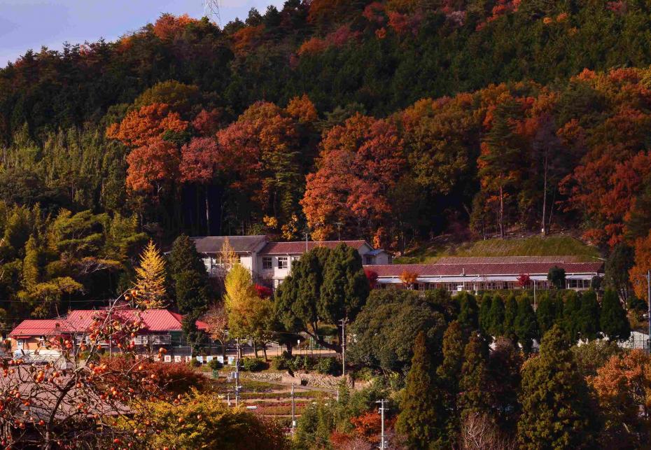 | 西宮市山口町船坂の田畑から見る旧 船坂小学校「晩秋の里山」 |