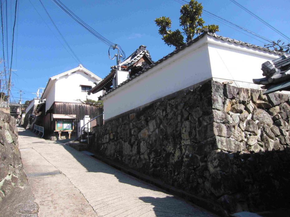 | 西宮名塩の坂道から見る石垣と寺町界隈の風景 |